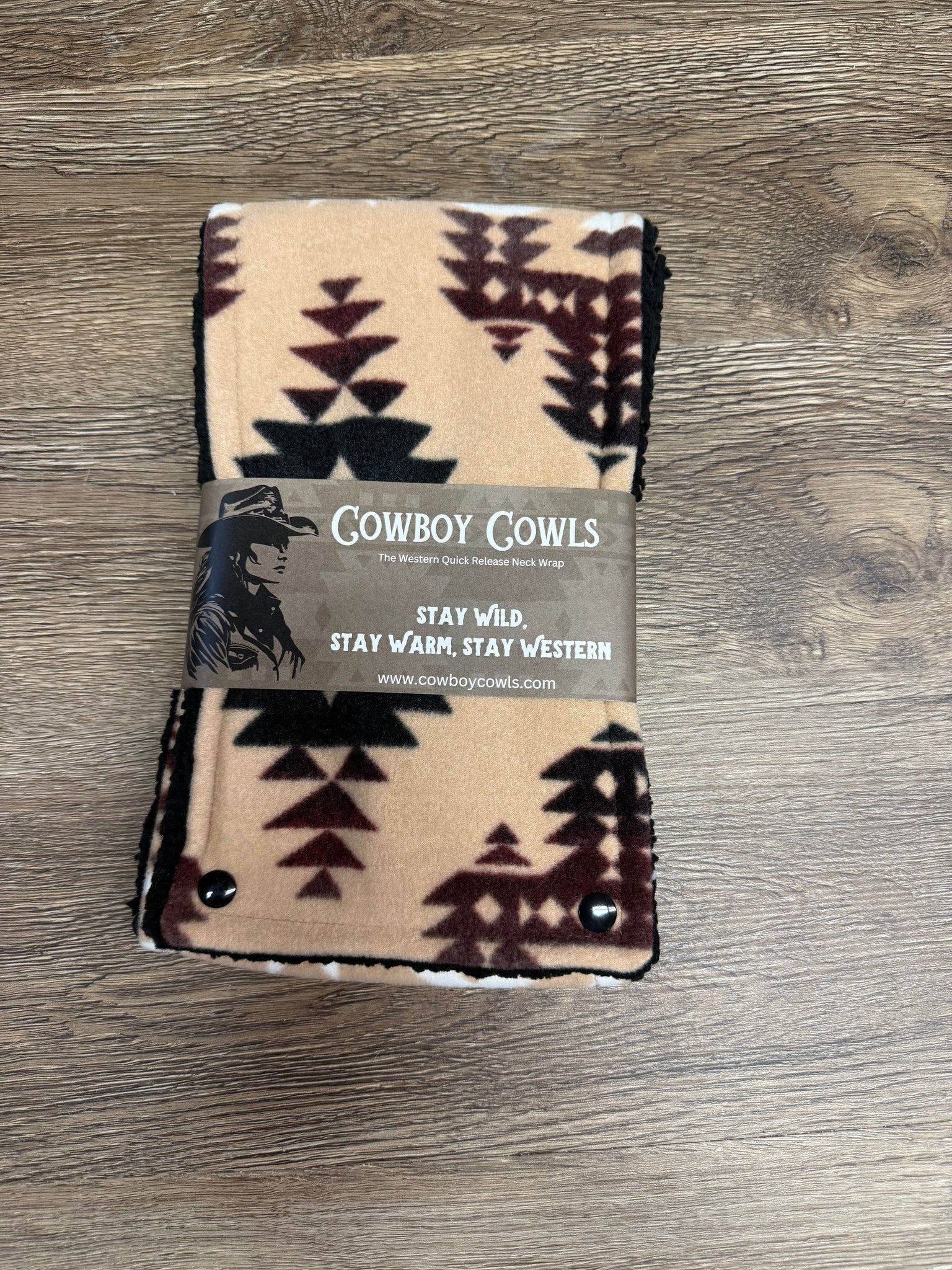 Step into the wild west with western Cowboy Cowls! These versatile cowls offer ultimate comfort and practicality with their super soft fleece exterior and a black Sherpa lining for extra insulation and warmth. The safety snaps provide a secure, hands-free fit while the two-way design allows for maximum warmth or a relaxed look. Handmade in the USA, these cowls are perfect for farmers and ranchers.