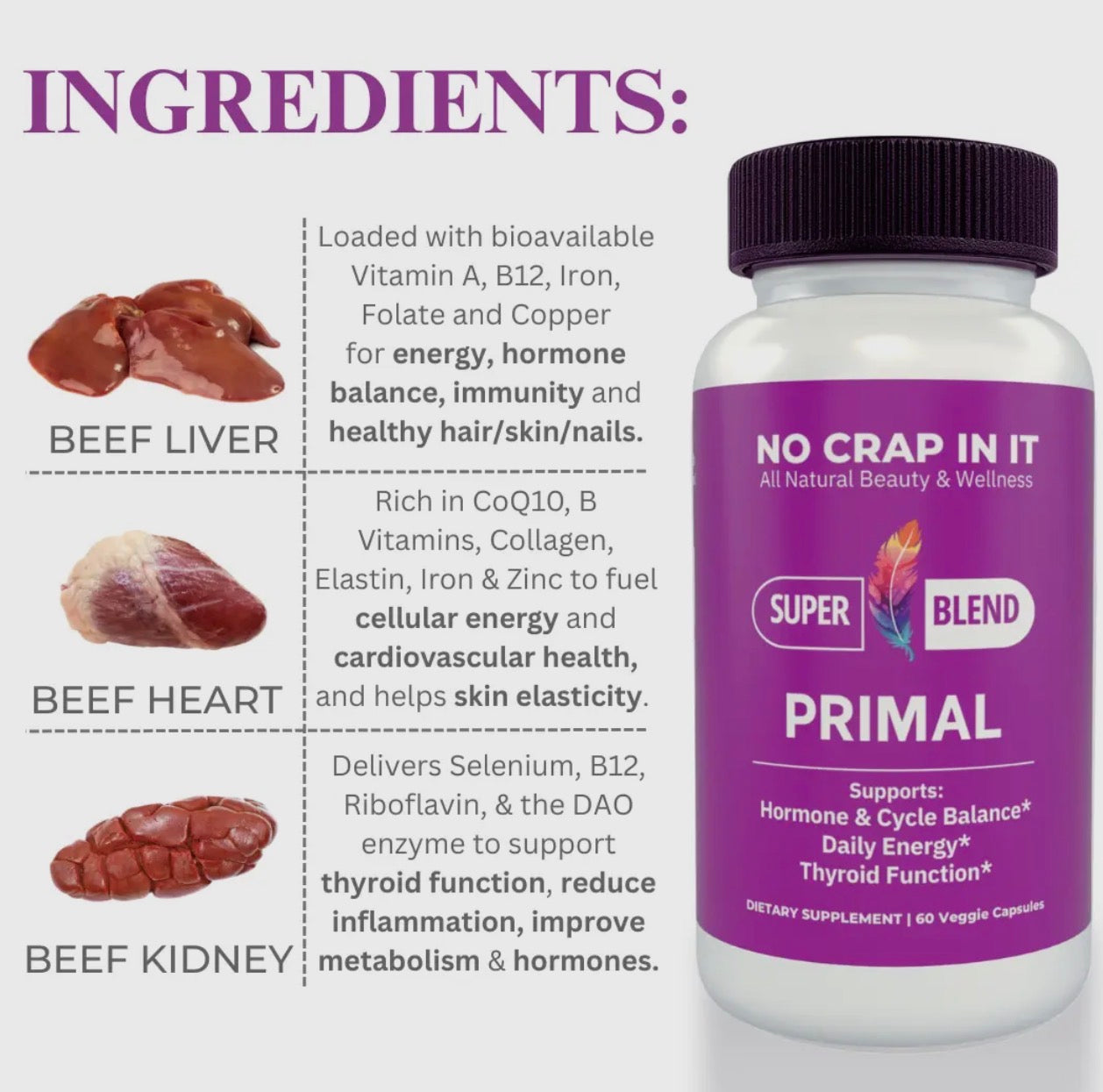 Ingredients: Beef Liver Powder, Beef Kidney Powder, Beef Heart Powder